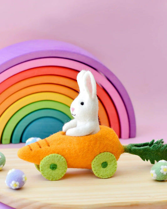 Felt Rabbit with Carrot Car Toy