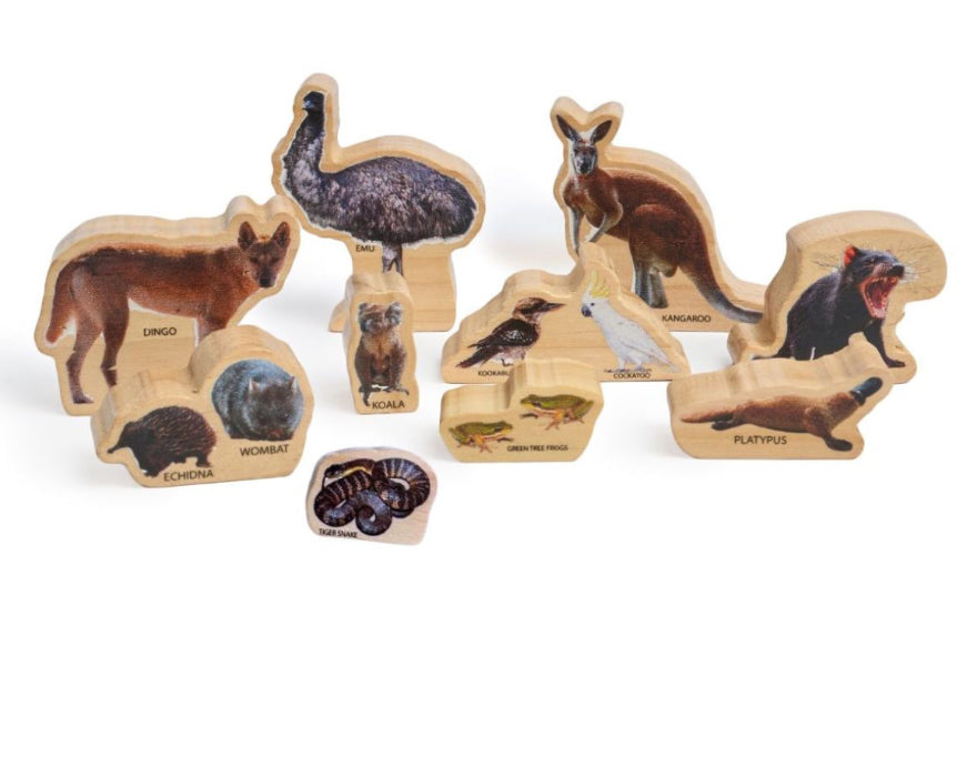 From the playful kangaroo to the iconic koala, deadly snakes and laughing kookaburras, this set is perfect for learning about the diverse ecosystems of Australia through imaginative, open-ended play. The perfect wooden toy for little explorers eager to learn about the unique wildlife that call Australia home.