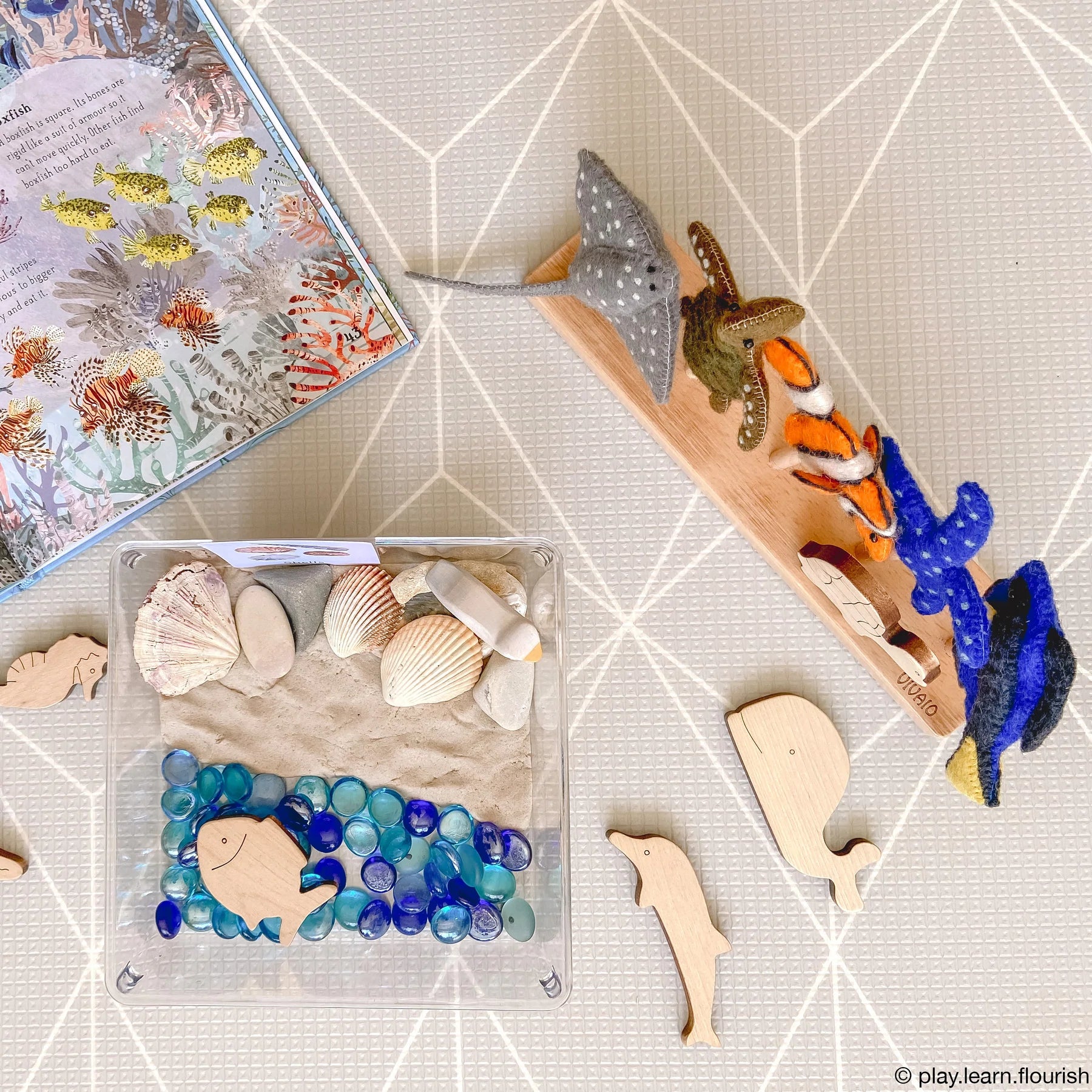 Our Australian Coral Reef finger puppets set consists of unique ocean creatures that can be found under the sea off the coasts of Australia - Blue Tang Fish, Green Sea Turtle, Clownfish, Blue Sea Star and Spotted Ray. Check out the details on each finger puppet!