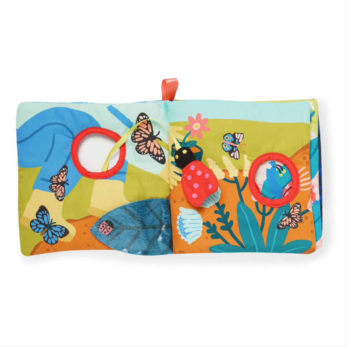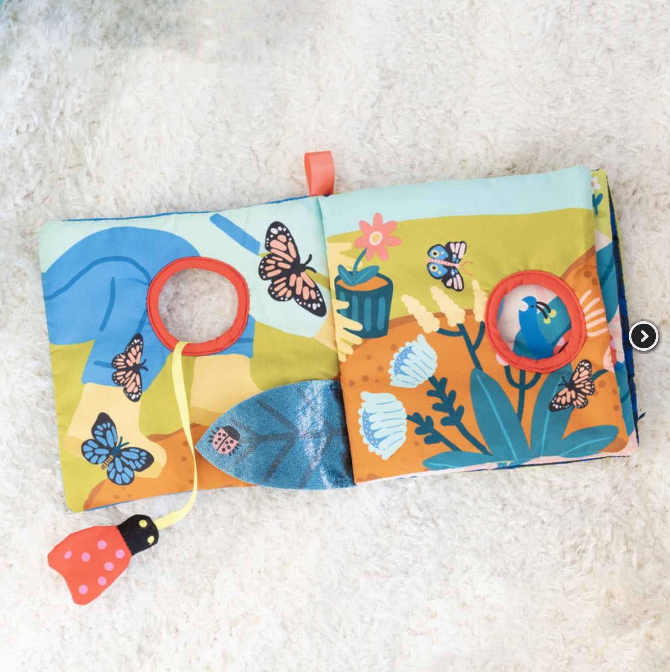 An adorable introduction to reading, this fabric book features a little beatle that buzzes through each of the four pages. It features bright colours and creates a great opportunity to build fine motor skills as young ones move the beatle through the holes on each page.