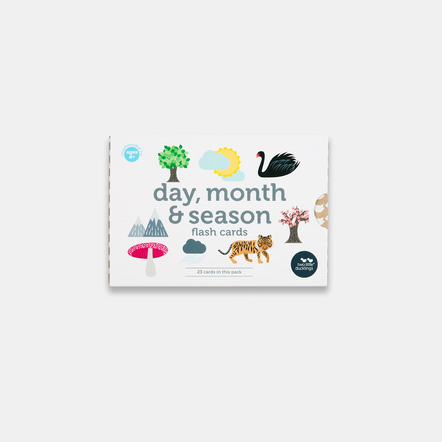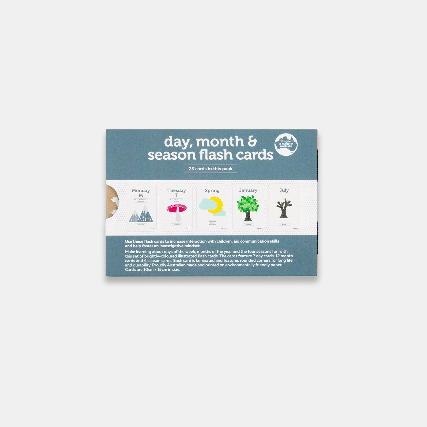 Make learning about days of the week, months of the year and the four seasons fun with this set of brightly-coloured illustrated flash cards. The cards feature 7 day cards, 12 month cards and 4 season cards. Each card is laminated and features rounded corners for long life and durability. Proudly Australian made and printed on environmentally friendly paper. Cards are 10cm x 15cm in size.