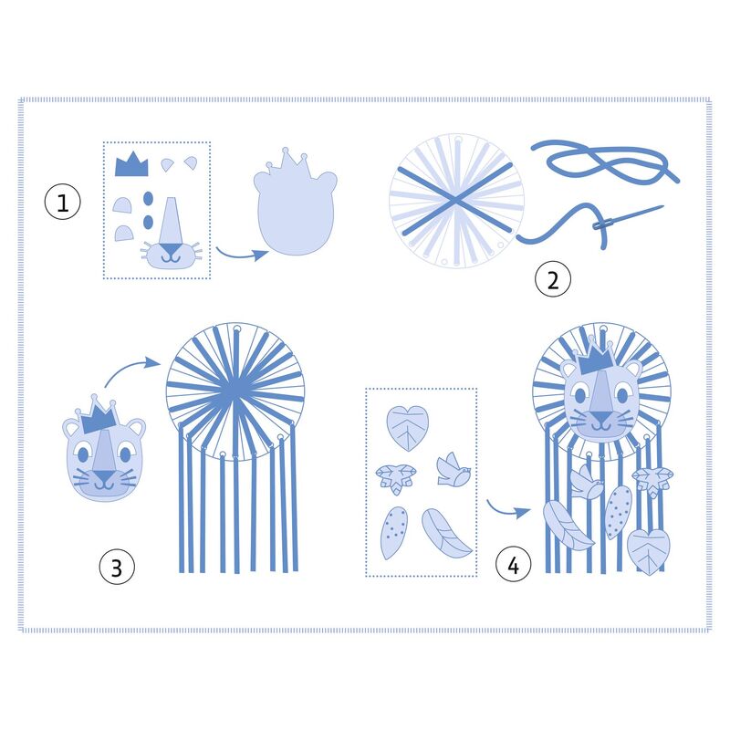 A creative kit specially adapted for younger children to make a pretty lion dream catcher.
