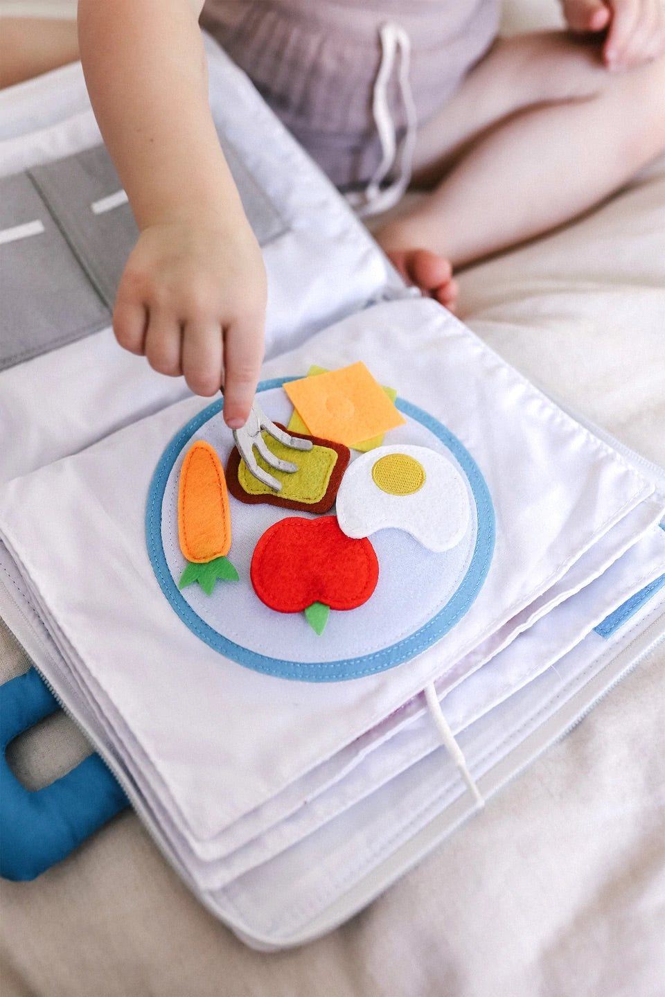 There are 10 interactive pages encouraging hands on learning, including telling time, brushing teeth, lacing shoelaces, unzipping, getting dressed, buckling the dog's collar, preparing food, doing household chores, matching, buttoning and much, much more.
