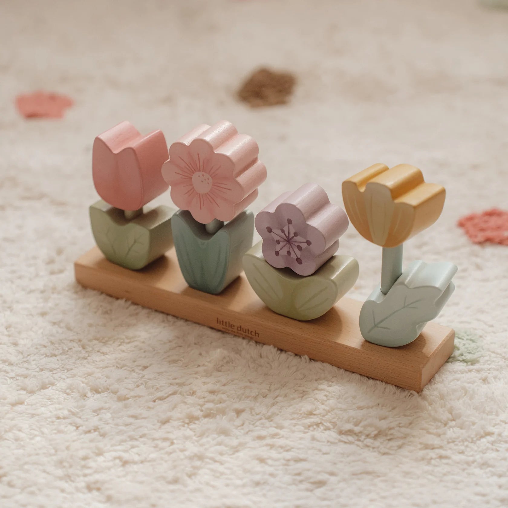 Creative Stacking: The set allows children to mix and match blocks to create a row of four magical flowers, fostering creativity and imaginative play as they build their own garden