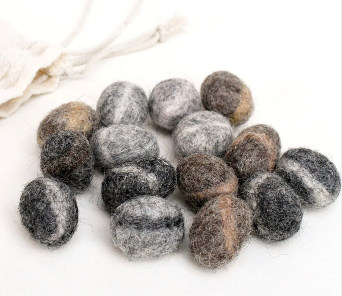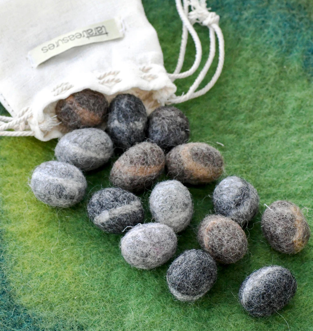 Felt Pebbles Stones in a Pouch - 3cm - 15 pebbles