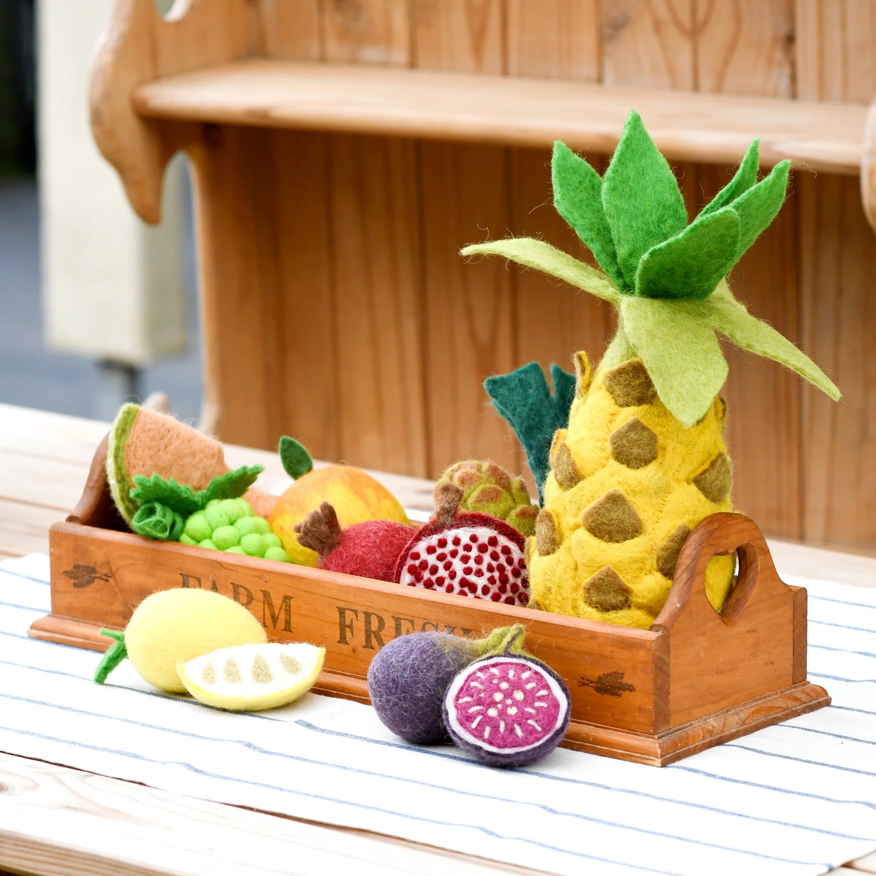 Each fruit and vegetable has been meticulously needle-felted with wool that has been dyed with non-toxic colours, making it safe for young children.