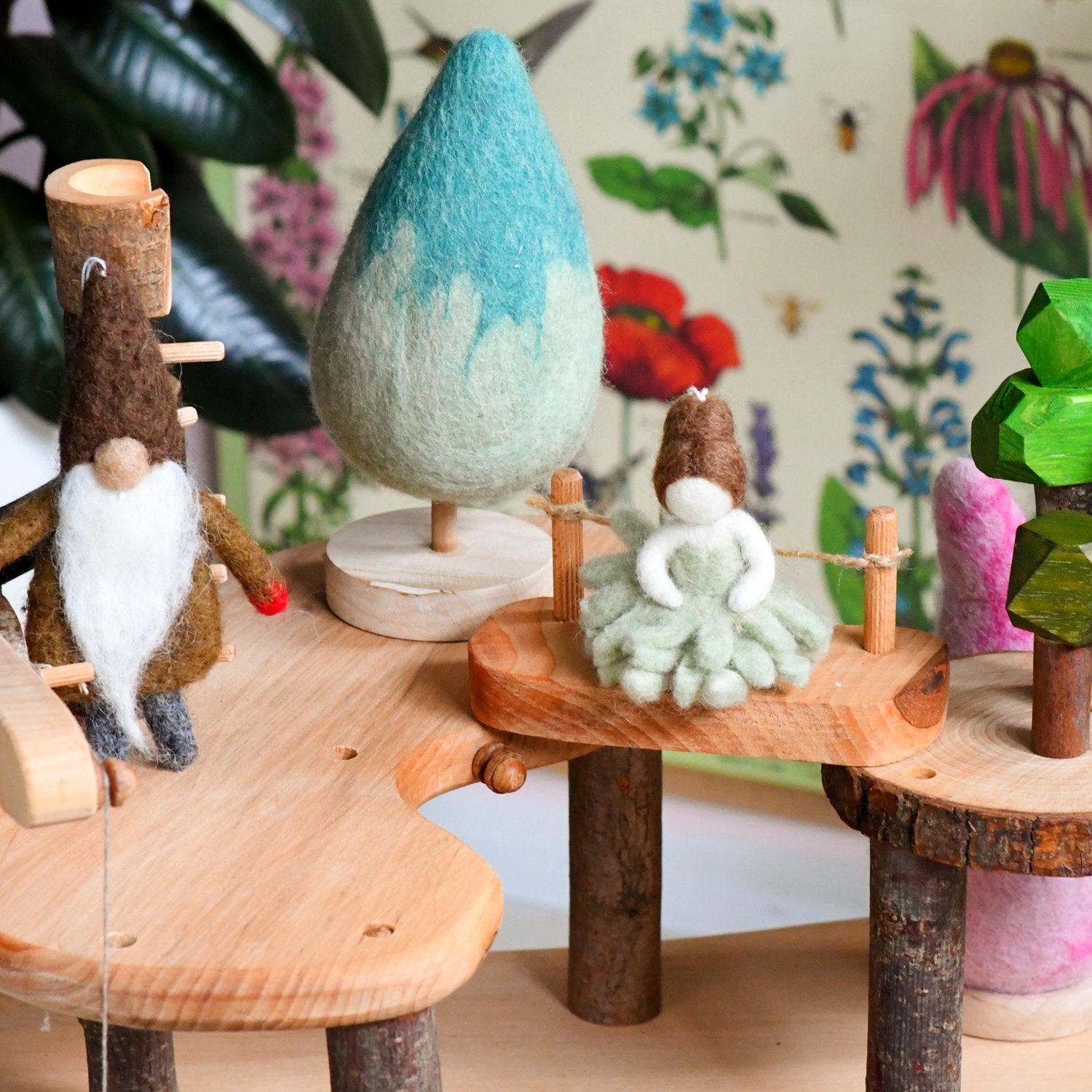 Needle-felted and ethically handmade, this beautiful Waldorf-inspired doll in her dress will add magic to your play space.