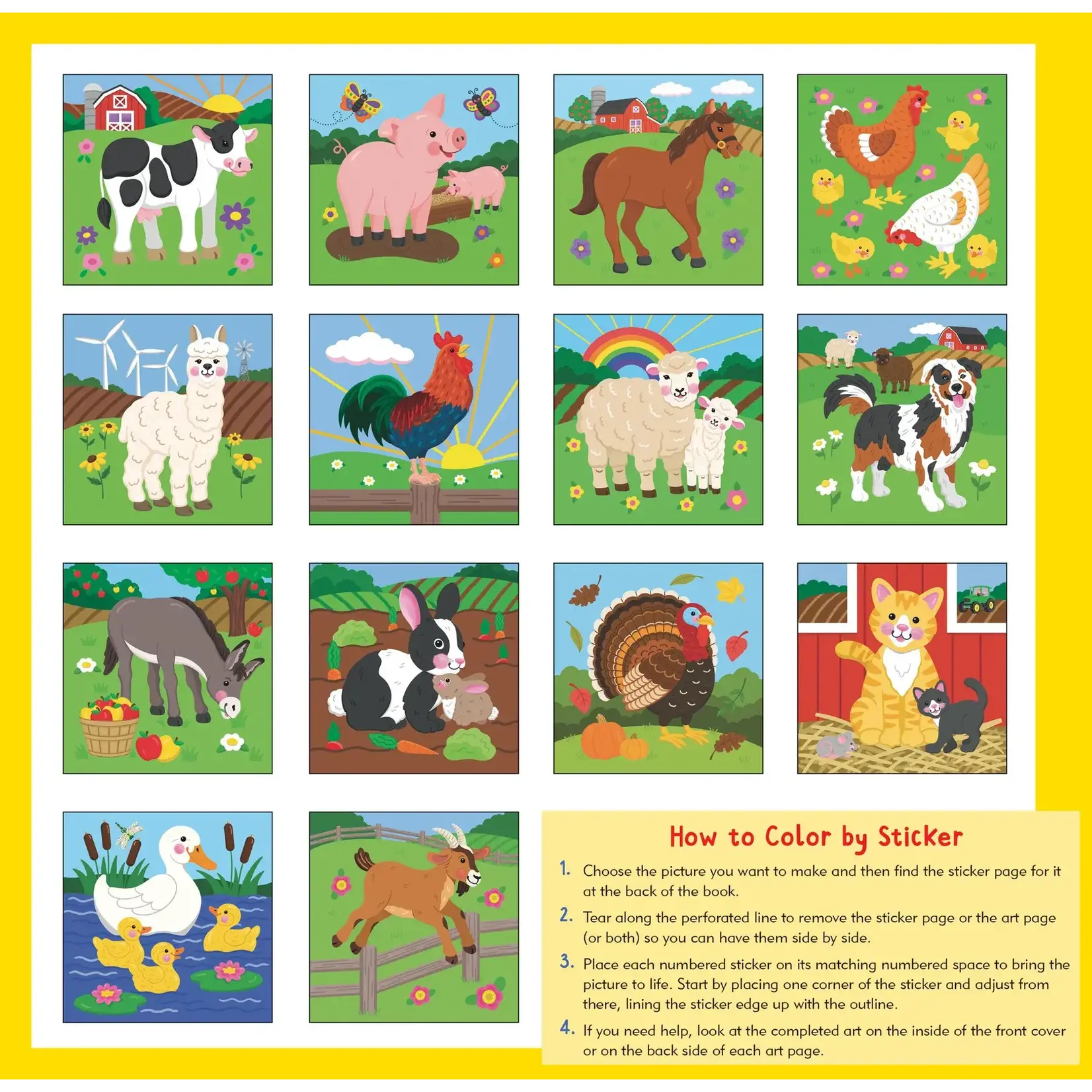 - Sticker book comes with 14 fun farm scenes to ''color'' with the stickers provided.