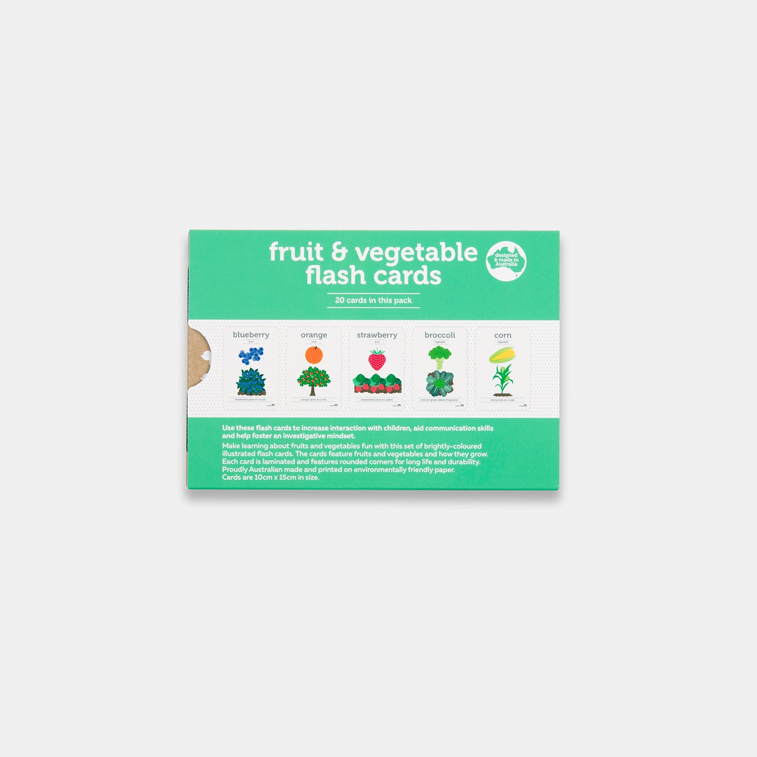 Make learning about fruits and vegetables fun with this set of brightly-coloured illustrated flash cards. The cards feature fruits and vegetables and how they grow. Each card is laminated and features rounded corners for long life and durability. Proudly Australian made and printed on environmentally friendly paper. Cards are 10cm x 15cm in size.