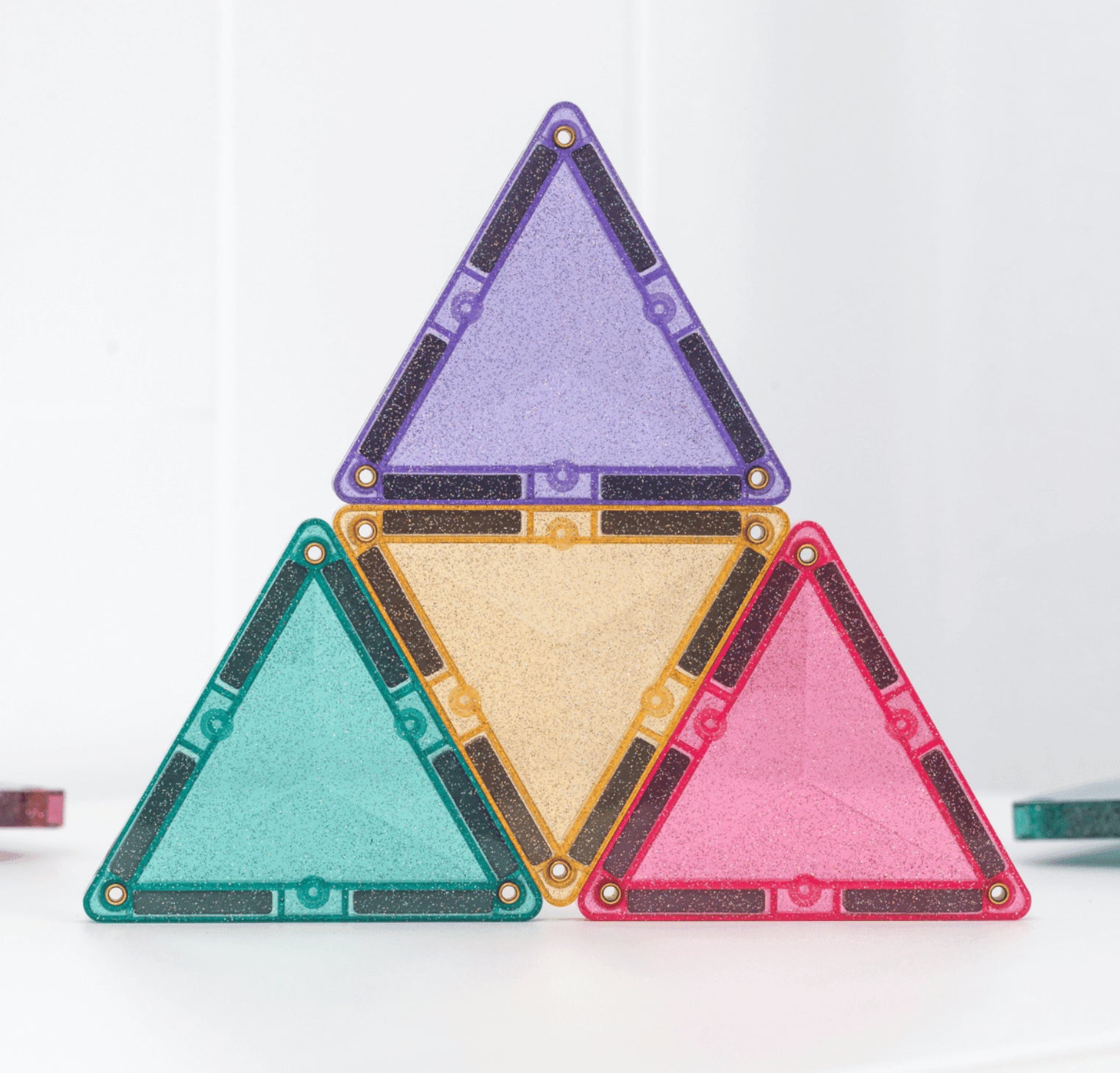Designed for big imaginations and fairytale explorers, our stunning glitter tiles in signature pastel and vibrant rainbow colours add a touch of magic to every build. Featuring squares, plus a mix of isosceles and equilateral triangles all bursting with multi-coloured sparkles, this open-ended pack is perfect for building shimmering castles, towers, bridges, animals and so much more!