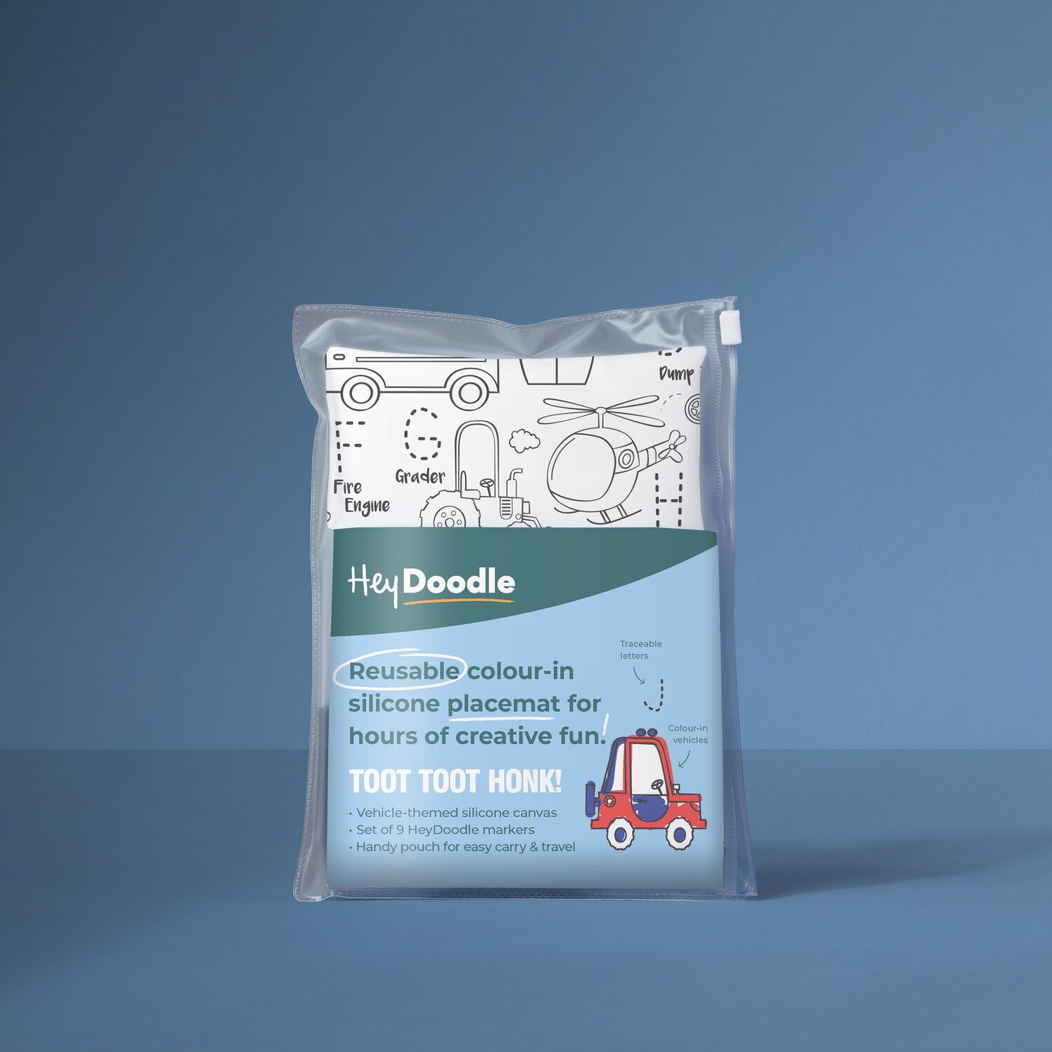 - Toot Toot Honk! - Traceable letter plus vehicle themed silicon canvas
