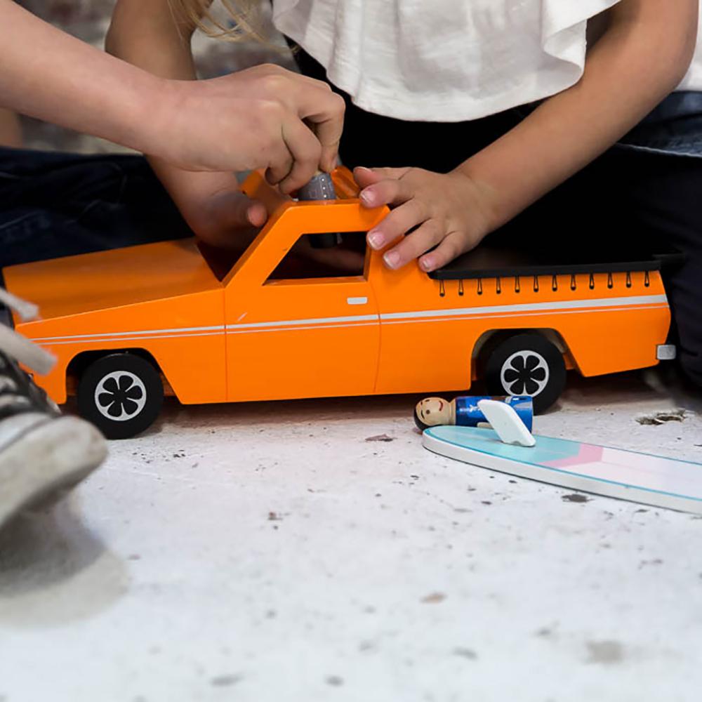 Rumour has it the "Ute" came about from a letter a farmer wrote to Ford asking for a "vehicle to take his wife to church in on Sundays and take his pigs to market with on Monday's". The Ute has been a much loved part of the Australian iconography since the 1930's. From the Jackaroo, to the Farmer, the Revhead Tradie the iconic Ute fits the bill. So whether you want to throw your surfboard in the back, bring your dog to the park or take your tools to the job, a Ute is likely to be you ride of choice. We have created our impression of the Ute with all the nostalgia and love you would expect for a classic toy for your little one. So let them open their minds to all the jobs this classic vehicle supports - or just a cruise down the open road to the beach. Vroom Vroom.