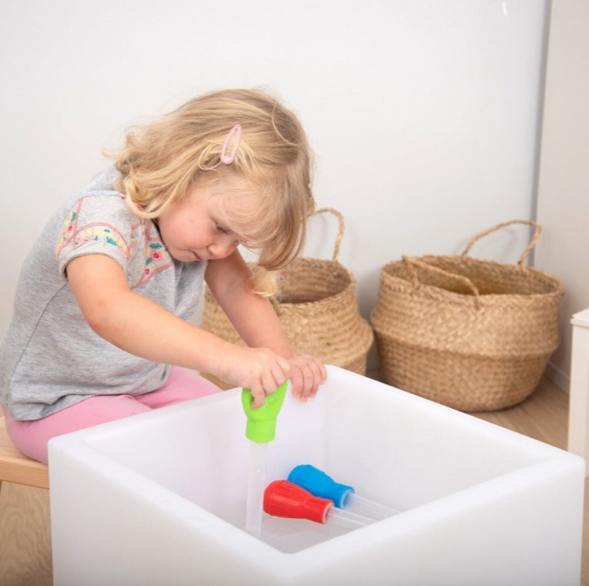 Jumbo pipettes with brightly coloured squeezy bulbs and measured markings on the dropper. A fun addition to sand and water play, for younger children to experiment with liquid properties and older children to learn about volume and measurement.