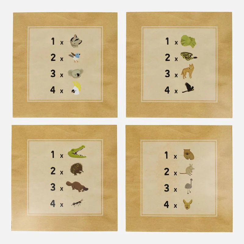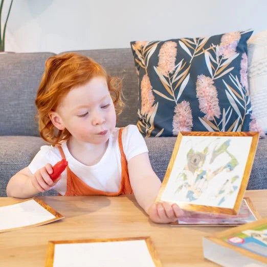 Ideal for portable play (no messy paintbrushes, no water glasses to knock over) this set contains four illustrations of typical Aussie bush scenes for kids to discover. The reverse side of each illustration board includes a list of fun things to find and count as you paint, providing hours of fun!