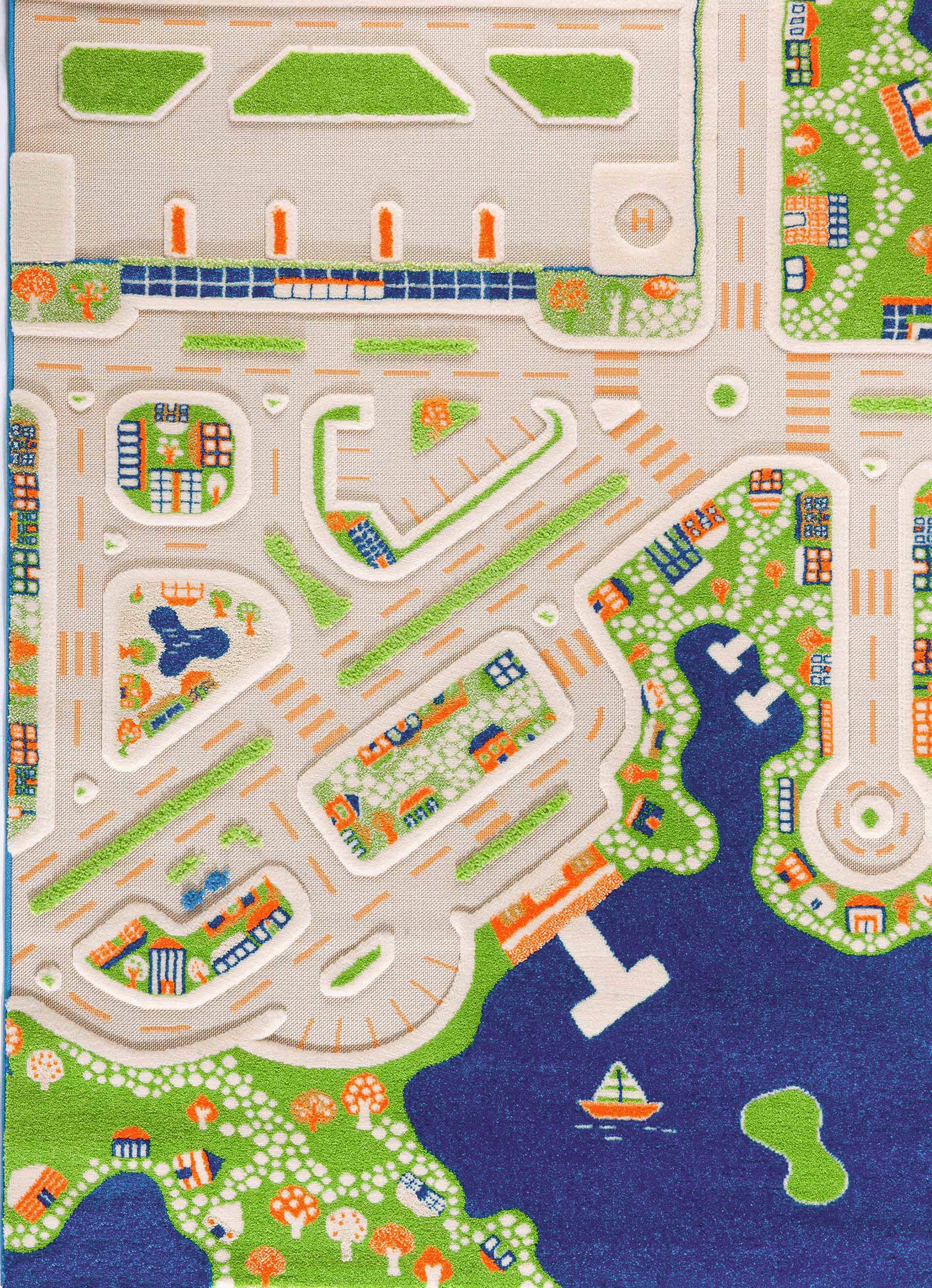 The Mini City Rug features an airport, parks, marina, ocean and more! The IVI rugs are designed to create hours of fun for kids. This rug is 3D and provides a large range of textures for your little one to play with their cars, farm animals, planes, boats and more!