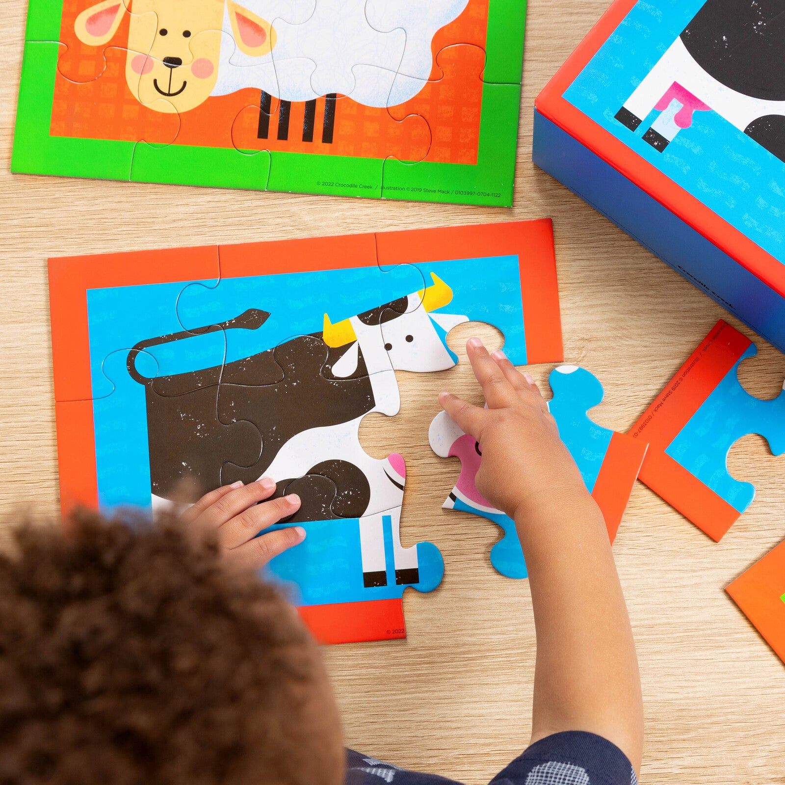 - 6, 9, 12 piece puzzles perfectly sized for little hands
