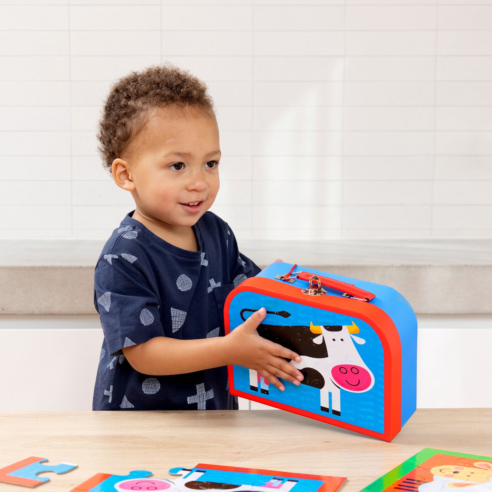 EARLY LEARNING PUZZLES! A set of three delightful beautifully illustrated puzzles of increasing difficulty that come in a sturdy reusable, multi-purpose case.