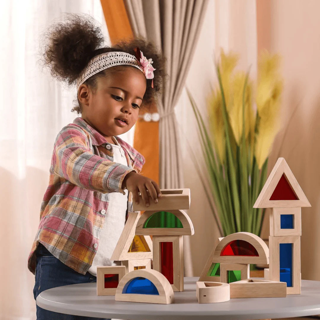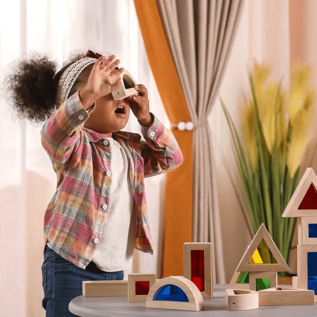The world looks completely different through these colourful blocks. With 24 blocks they are great for building and designing anything you can imagine! Different shapes and sizes of each colour help teach the children a range of new things.