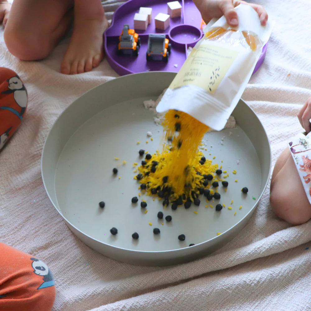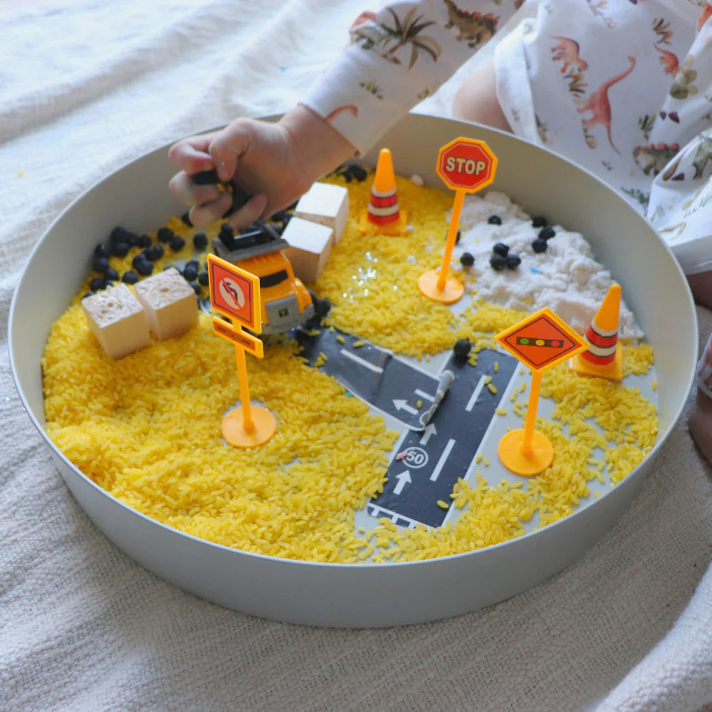 Perfect for little hands to explore and get all that delicious sensory feedback. Discover all the different colours while developing fine motor skills by scooping, pouring, mixing and sorting. Gorgeous wooden scoop included! The sensory rice is made with vinegar and oil-based food colouring.