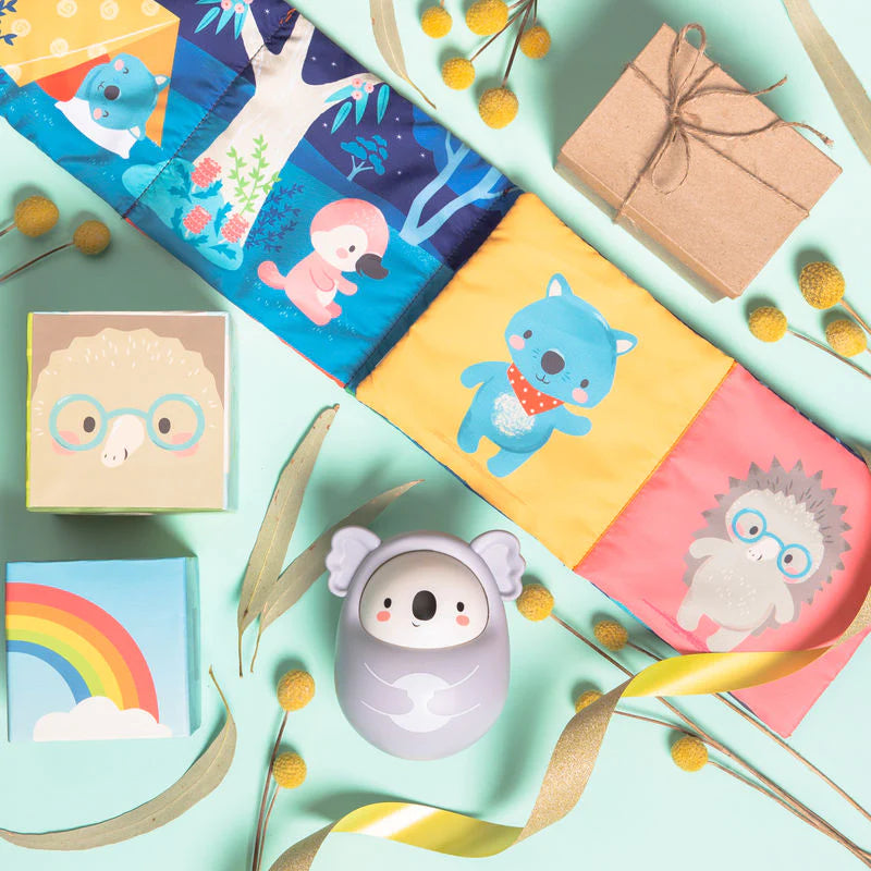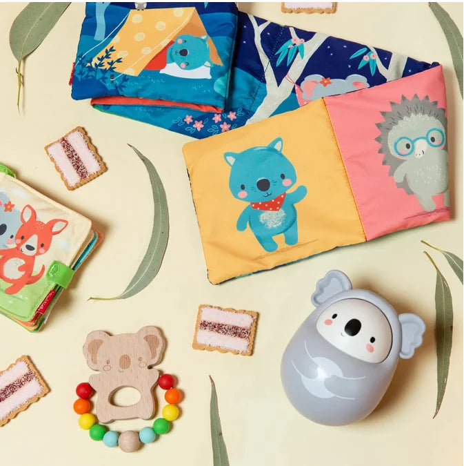 Design inspired by of our most loved Aussie Animals, Koala’s rounded, weighted bottom will always spin him back upright for more play. And as he rolls around he makes a lovely tinkling bell sound, for additional sensory stimulation.