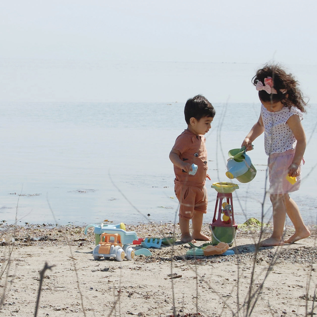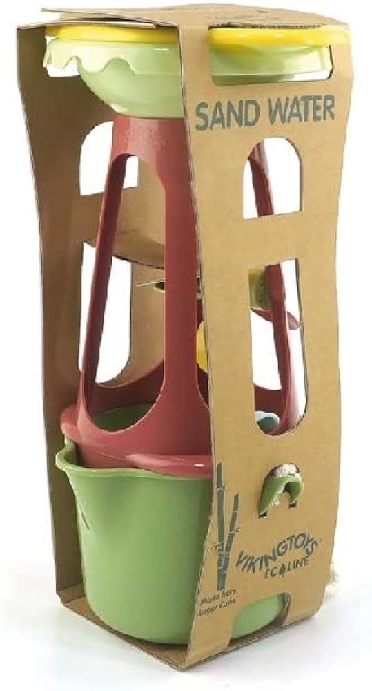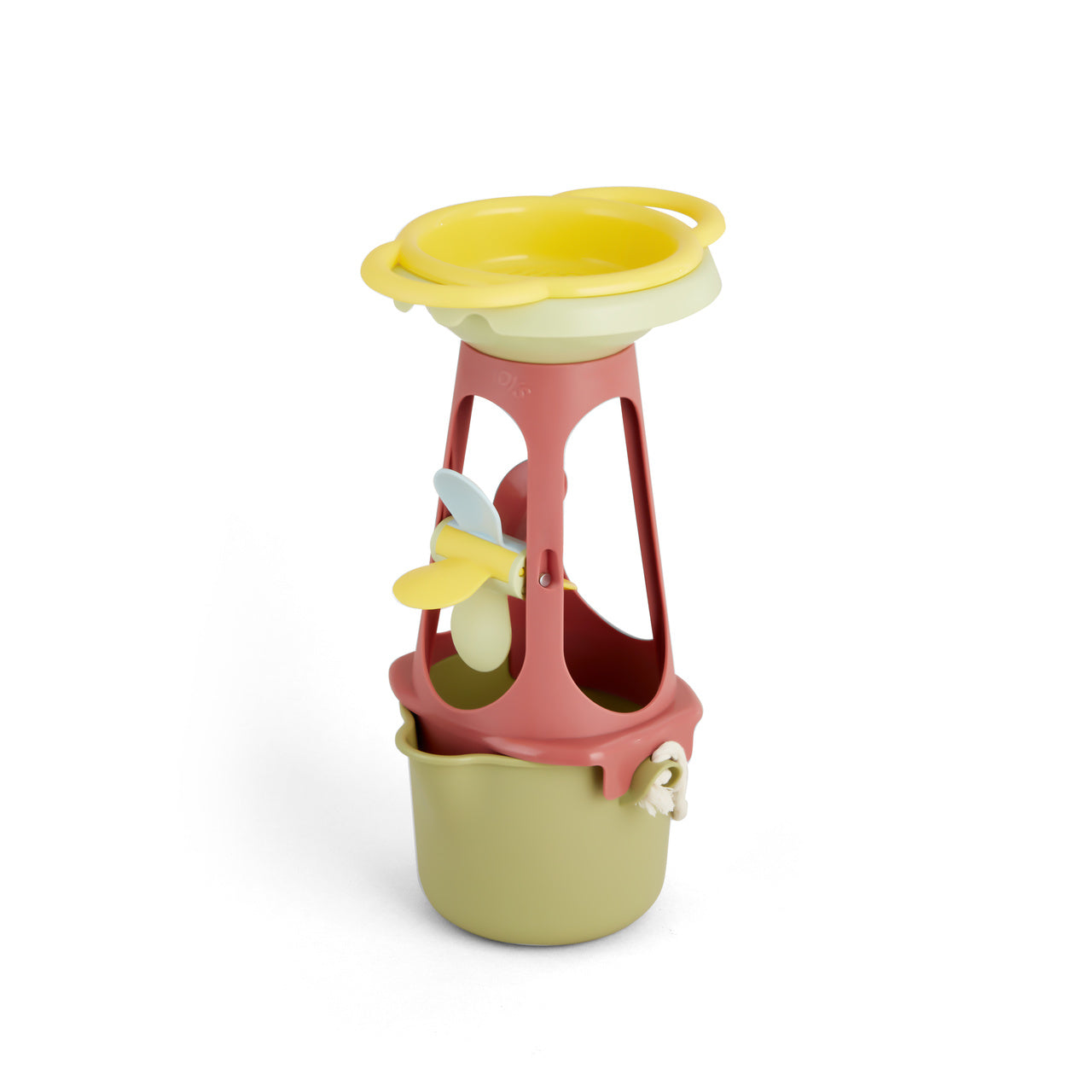 Sand warming from the sun and splashing water. The big paddle wheel goes round and round and mixes a lovely, sticky mess in the bucket. Our eco friendly sand and water mill promises hours and hours of sustainable fun playing in the sun!
