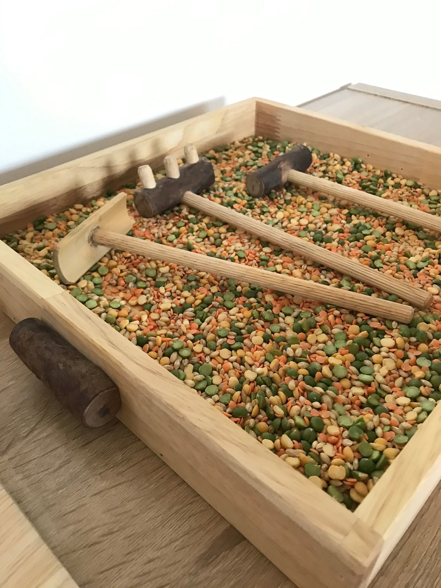Our sand tray and play set is a comprehensive tool for fostering children’s emotional well-being and development. It includes a tray along with 3 sand tools, offering a versatile platform for sand tray therapy.