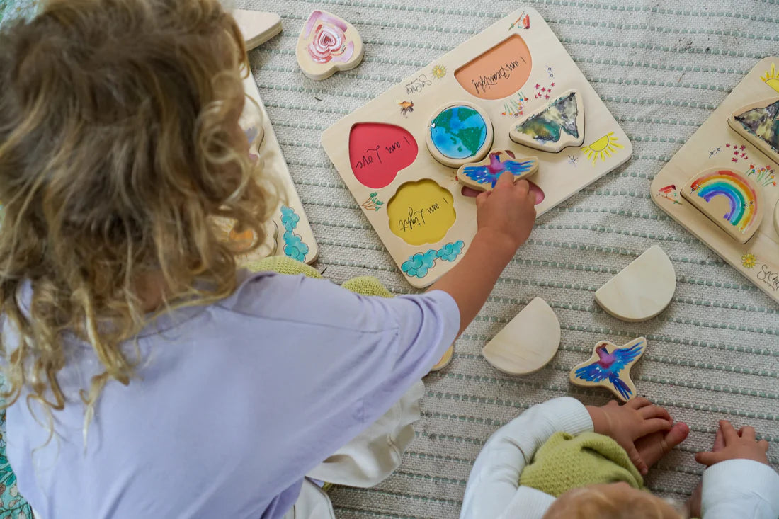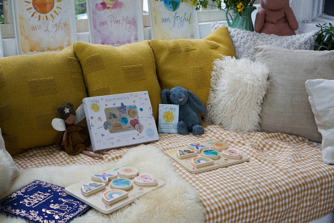The SunChild Wooden Affirmation Puzzle is a puzzle with purpose. It is a great way to introduce young children to the benefits of puzzle play and a positive mindset. Featuring stunning hand-painted nature illustrations and vibrant colours on wood, this puzzle encourages children to engage with the world around them.