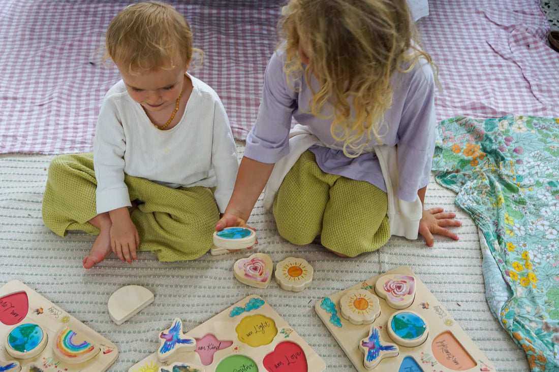 With its colourful pieces, its purpose is to introduce positive affirmations such as 'I am kind', 'I am positive', 'I am beautiful', 'I am love', 'I am light', and 'I am powerful'. This wooden puzzle provides the foundation for self-love and empowerment, helping children develop a strong sense of self-esteem and confidence that will benefit them throughout their lives.