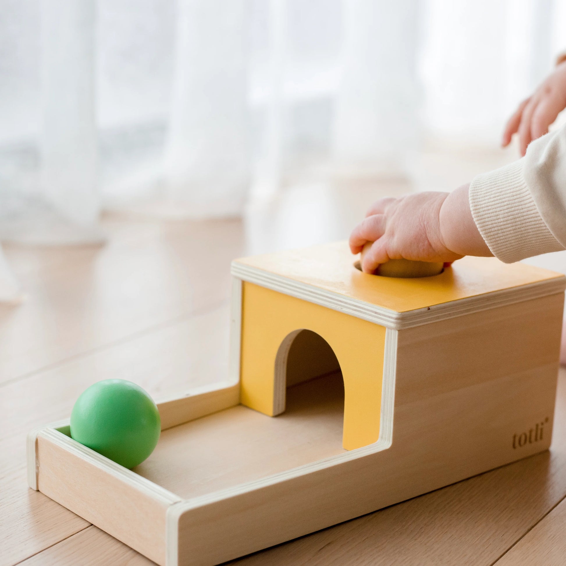 The Totli Ball Drop will help your child's gross motor skills grow as they learn that things can exist even when you can't see them. Perfect for learning about object permanence and strengthening visual tracking skills.