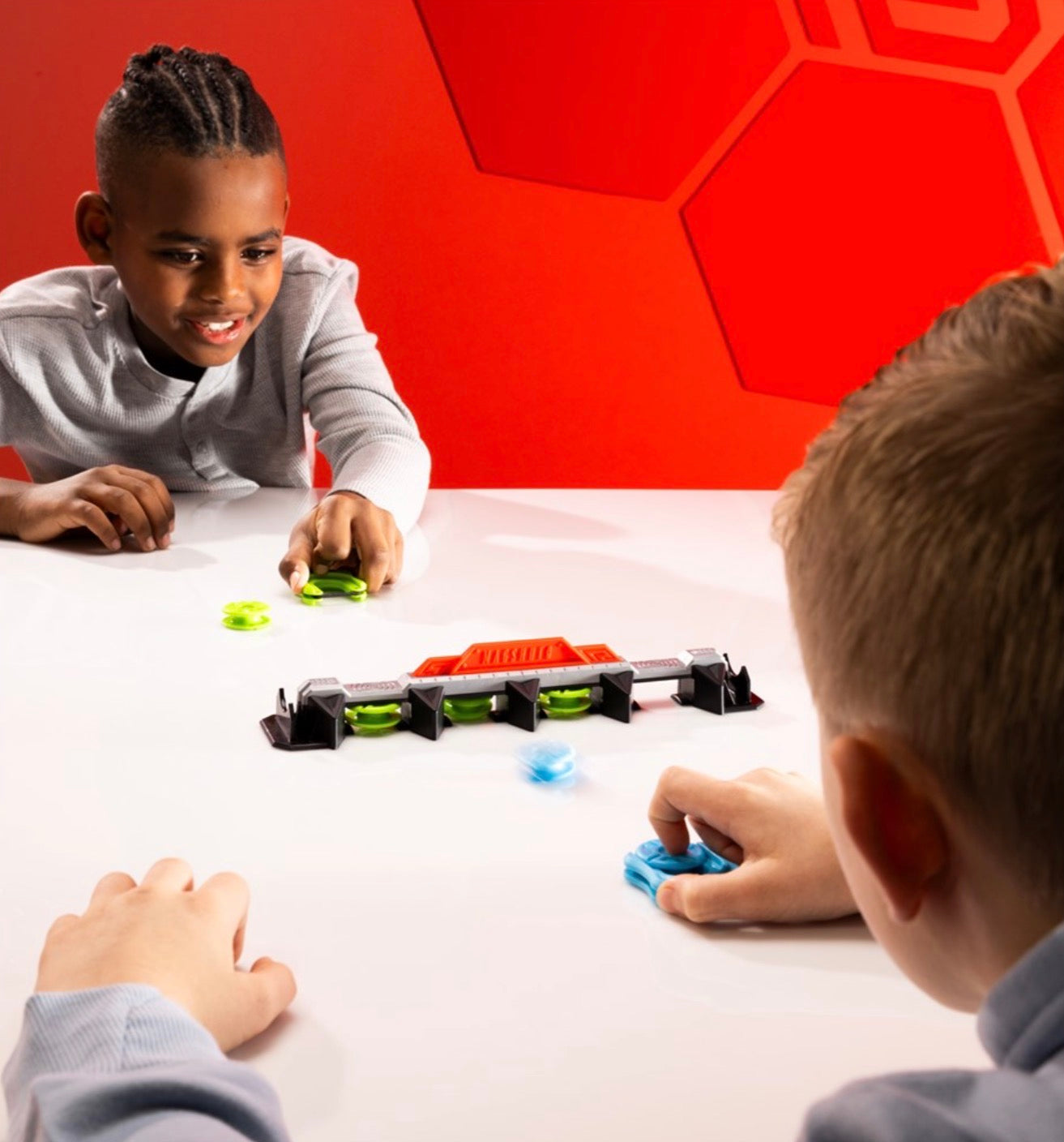 Each player gets a launcher and five Mag-Pods. Then - ready, set, LAUNCH! Your goal is to get a pod into all four slots of the rail. If your opponent claims a slot, you can knock out their Mag-Pod and claim the slot for yourself. It's an intense test of speed and accuracy! Or, combine it with the Stunt Park and Mag-Kits to turn trick-shot creativity into a head-to-head challenge. Magshuto. Become a Trick Shot Master!