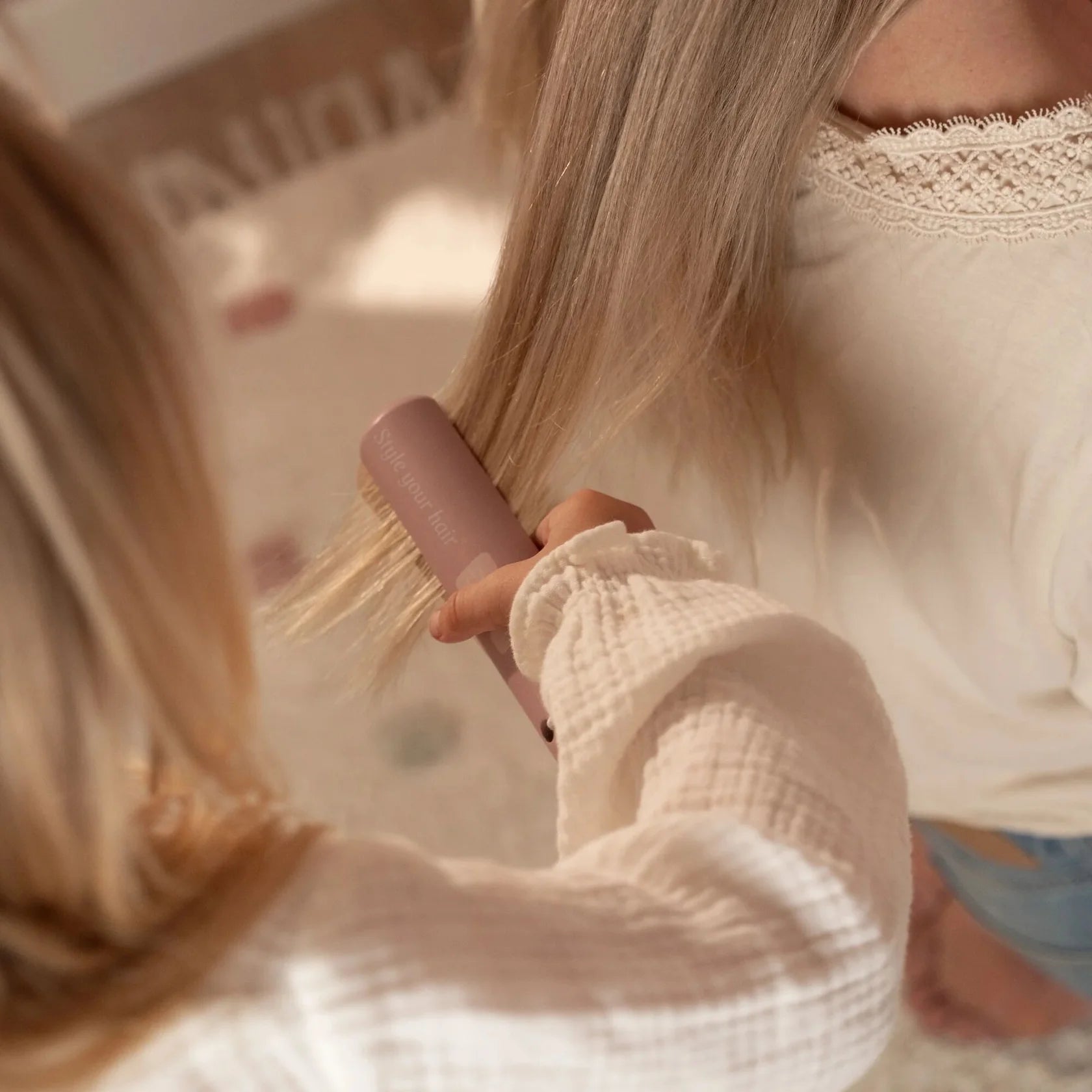 Cut, blow-dry, and style like a real hairdresser! With this beautiful wooden hairdressing set, your little one has everything at hand to create the most beautiful hairstyles. The adjustable pink hip belt is filled with professional accessories, such as a toy scissors, a hairdryer, a straightener, a clipper, a brush, shampoo, hairspray, and a mirror. Perfect for role-playing and endless fun. Who will be the first in the salon chair?