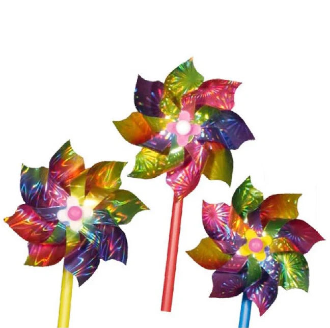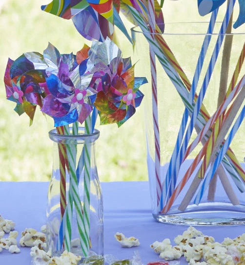 Daisy Windmill is a traditional toy featuring eight vividly coloured petals with a striped stick. Standing 8cm tall, it's ideal for party favours and little hands.