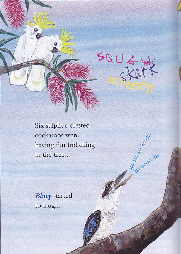 This Australian kid’s book is an illustrated children’s story about a Laughing kookaburra, called ‘Bluey’.(Character’s name suggested by Bob Irwin on World Cassowary Day in Mission Beach, Queensland, Australia). The kookaburra’s laugh is heard by many other birds.