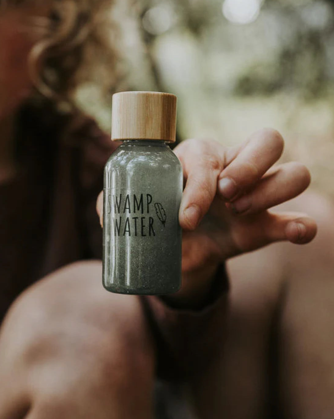 • 2 x sparkly liquids in reusable PET plastic bottles with bamboo screw cap.