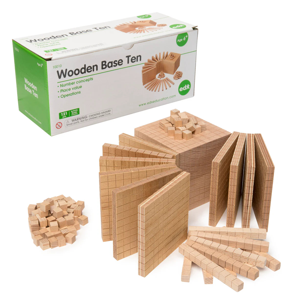 Precision crafted blocks are the number one manipulative for teaching grouping, place value,number concepts, operations, measurement,fractions, decimals, percentages and volume.Scored in centimetres on all sides these durable blocks are sure to give years of use. An early and sound knowledge of base ten can lead to mathematical success in years to come.Set includes 100 cubes, 10 rods, 10 flats and 1 block, boxed.