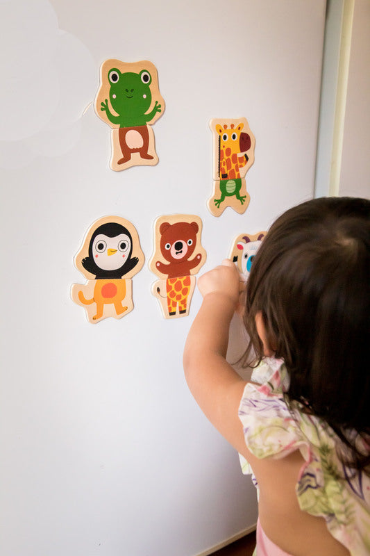 Put together the pieces to make 12 different animals or mix the pieces up and make crazy jungle animals. Includes 24 magnetic pieces.